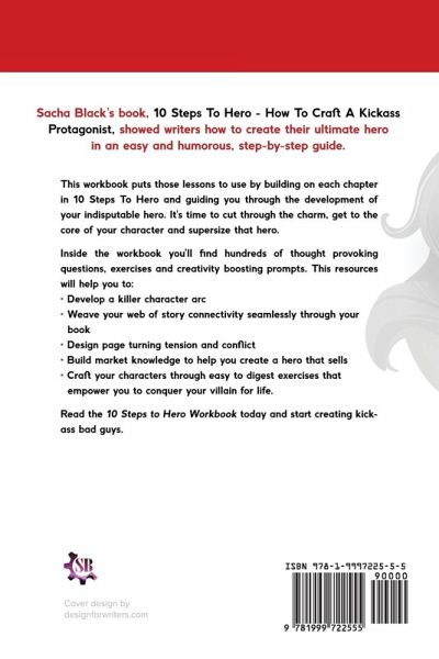 Sacha Black's book, 10 Steps To Hero - How To Craft A Kickass Protagonist, showed writers how to create their ultimate hero in an easy and humorous, step-by-step guide. This workbook puts those lessons to use by building on each chapter in 10 Steps To Hero and guiding you through the development of your indisputable hero. It's time to cut through the charm, get to the core of your character, and supersize that hero. Inside the workbook you'll find hundreds of thought-provoking questions, exercises, and creativity boosting prompts. This resource will help you to: + Develop a killer character arc + Weave your web of story connectivity seamlessly through your book + Design page turning tension and conflict + Build market knowledge to help you create a hero that sells Craft your characters through easy-to-digest exercises that empower you to master your heroes. Read the 10 Steps To Hero Workbook today and start creating kickass protagonists.