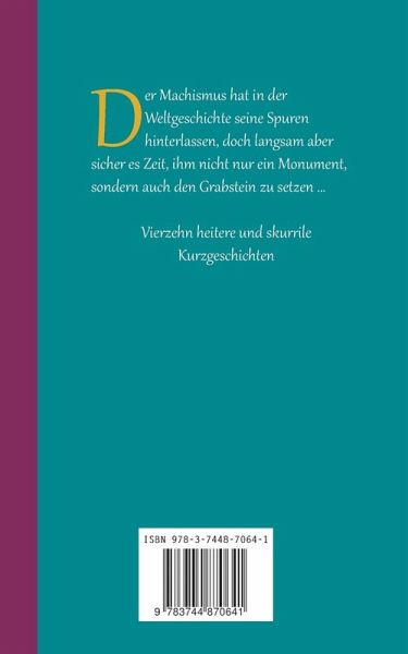 Der Machismus hat in der Weltgeschichte seine Spuren hinterlassen, doch langsam aber sicher es Zeit, ihm nicht nur ein Monument, sondern auch den Grabstein zu setzen ...Vierzehn heitere und skurrile Kurzgeschichten.