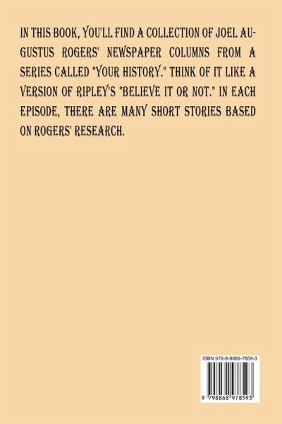 In this book, you'll find a collection of Joel Augustus Rogers' newspaper columns from a series called "Your History." Think of it like a version of Ripley's "Believe It or Not." In each episode, there are many short stories based on Rogers' research.