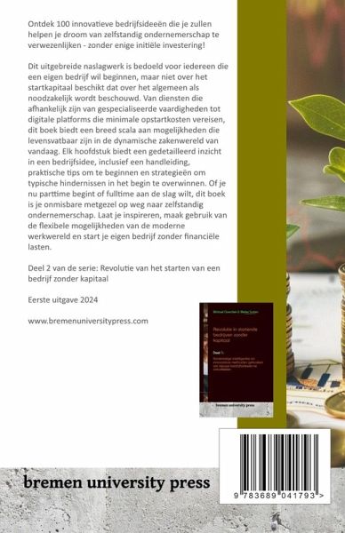 Ontdek 100 innovatieve bedrijfsideeën die je zullen helpen je droom van zelfstandig ondernemerschap te verwezenlijken - zonder enige initiële investering! Dit uitgebreide naslagwerk is bedoeld voor iedereen die een eigen bedrijf wil beginnen, maar niet over het startkapitaal beschikt dat over het algemeen als noodzakelijk wordt beschouwd. Van diensten die afhankelijk zijn van gespecialiseerde vaardigheden tot digitale platforms die minimale opstartkosten vereisen, dit boek biedt een breed scala aan mogelijkheden die levensvatbaar zijn in de dynamische zakenwereld van vandaag. Elk hoofdstuk biedt een gedetailleerd inzicht in een bedrijfsidee, inclusief een handleiding, praktische tips om te beginnen en strategieën om typische hindernissen in het begin te overwinnen. Of je nu parttime begint of fulltime aan de slag wilt, dit boek is je onmisbare metgezel op weg naar zelfstandig ondernemerschap. Laat je inspireren, maak gebruik van de flexibele mogelijkheden van de moderne werkwereld en start je eigen bedrijf zonder financiële lasten. Deel 2 van de serie: Revolutie van het starten van een bedrijf zonder kapitaal