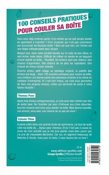 Vous avez déjà entendu parler d'un enfant qui ne soit jamais tombé en apprenant à marcher ? D'un musicien qui n'ait pas commencé par accumuler les fausses notes ? Bien sûr que non, car l'échec est une étape indispensable pour réussir.Malgré tout, dans notre société fondée sur le culte du bon élève, le mot échec reste tabou. Difficile de crâner en soirée en se targuant d'avoir planté sa boîte... Pourtant, les échecs sont une chance. Une chance d'apprendre. Une chance de ne plus les reproduire. Une chance de mieux réussir ensuite.Enorme erreur, petit ratage ou plantage original, la palette des échecs est large... Avec 100 conseils pratiques pour couler sa boîte, vous éviterez une bonne partie des panneaux et tartes à la crème du créateur d'entreprise. Et c'est tant mieux, car cela vous permettra de faire vos propres erreurs, celles qui serviront de socle à votre future réussite !Avec une préface de Xavier Niel