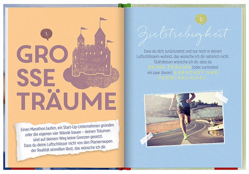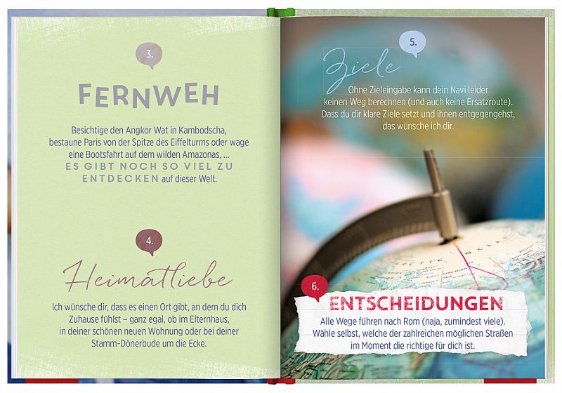 Die herzlichen lebensnahen Wünsche machen dieses Buch zum perfekten Geschenk für junge Menschen. Am Ende des Buchs regen Reflexionsseiten den Beschenkten dazu an, sowohl über die genannten Wünsche als auch über seine eigenen Wünsche fürs Leben nachzudenken.