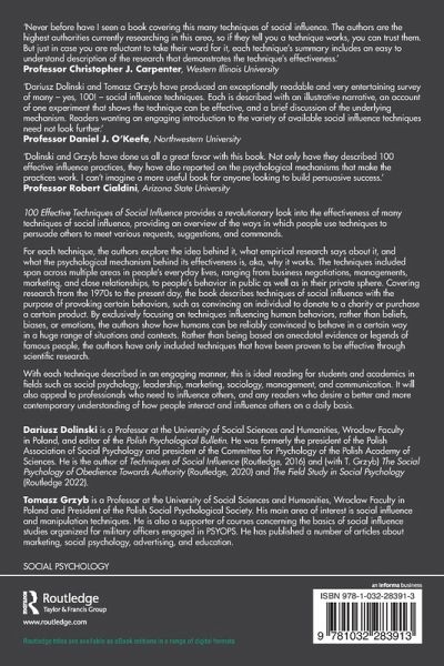 "Dolinski and Grzyb have done us all a great favor with this book. Not only have they described 100 effective influence practices, they have also reported on the psychological mechanisms that make the practices work. I can't imagine a more useful book for anyone looking to build persuasive success."