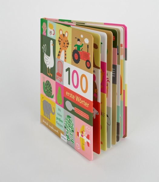 Farbenfroh, modern und verspielt lernen hier Kinder ab 12 Monaten die ersten Wörter aus ihrer Alltagswelt kennen. Die Begriffe sind unterschiedlichen Themenwelten zugeordnet: