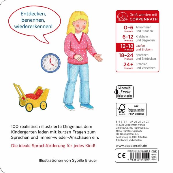 Entdecken, benennen, wiedererkennen! 100 realistisch illustrierte Dinge aus dem Kindergarten laden zum Sprechenlernen ein.