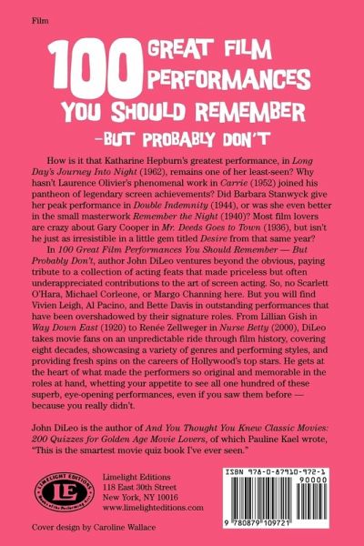 From Lillian Gish in Way Down East (1920) to Renée Zellweger in Nurse Betty (2000), DiLeo takes movie fans on an unpredictable ride through 80 years of film history, showcasing a variety of genres and performing styles, and providing fresh spins on the careers of Hollywood's top stars. In this collection of short, informal essays, the author bypasses mainstream cinema and pays tribute to overlooked performances while bringing a necessary dose of renewed attention to those once-heralded and now forgotten.