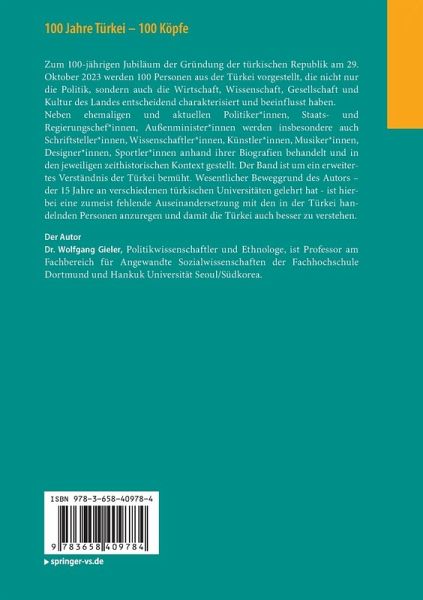 Neben ehemaligen und aktuellen Politiker_innen, Staats- und Regierungschef_innen, Außenminister_innen werden insbesondere auch Schriftsteller_innen, Wissenschaftler_innen, Künstler_innen, Musiker_innen, Designer_innen, Sportler_innen anhand ihrer Biografien behandelt und in den jeweiligen zeithistorischen Kontext gestellt. Der Band ist um ein erweitertes Verständnis der Türkei bemüht. Wesentlicher Beweggrund des Autors - der 15 Jahre an verschiedenen türkischen Universitäten gelehrt hat - ist hierbei eine zumeist fehlende Auseinandersetzung mit den in der Türkei handelnden Personen anzuregen und damit die Türkei auch besser zu verstehen.