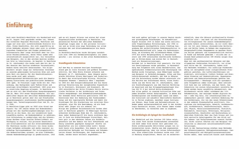 Ergänzt wird der Band von einem übersichtlichen, reich bebilderten Abriss der 100-jährigen Geschichte und einer ausführlichen Einführung. Die 66 Autoren des Bandes sind Wissenschaftler der LWL-Archäologie für Westfalen, der westfälischen Stadt- und Kreisarchäologien und der Museen.