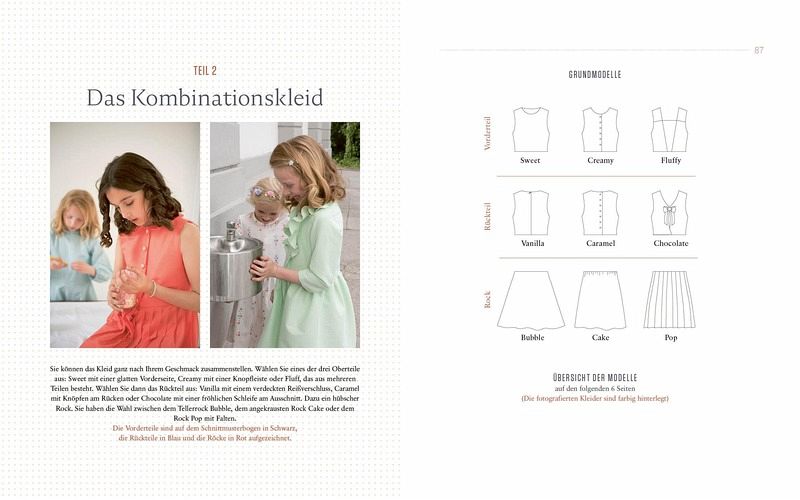 Deiner eigenen Kreativität sind keine Grenzen gesetzt. Die einzelnen Schnittelemente, also Röcke sowie Oberteil-Vorder- und Rückseiten kannst du ganz nach Belieben zusammenstellen, sodass dein individuelles und einzigartiges Kleid-Design entsteht. Ob lange oder kurze Ärmel, sportliches Sweatkleid oder ausgestellt mit Volants: für alle Prinzessinnen und Räubertöchter, für Tierfreundinnen und Blumenmädchen. Mit beigefügtem Grundlagenteil inklusive Informationen zum richtigen Maßnehmen, Schnittmuster anpassen, der Stoffauswahl und Erklärungen zu Basistechniken des Nähhandwerks. Liest du noch oder nähst du schon?