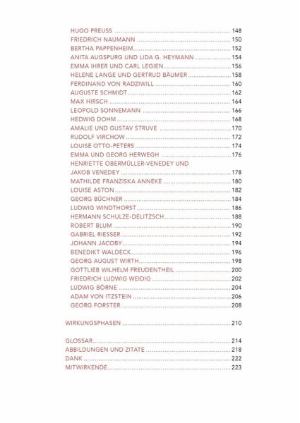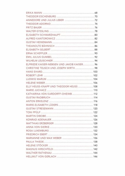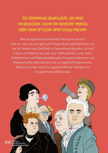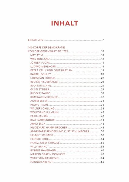 dem stolzen Bewusstsein, dass die Herrschaft dem ganzen Volk gehört!“ Die nächste Phase behandelt die…mehrIch fange einfach mal mit Seite 210 an, denn dort sind die vorgestellten 100 Personen mach Wirkungsphasen eingeteilt. Es beginnt mit dem Jahr 1789, der Zeit der französischen Revolution und Georg Forster, dem in der Aufstellung die letzte Seite gewidmet wird. Sein Zitat endet mit den Worten „…mit dem stolzen Bewusstsein, dass die Herrschaft dem ganzen Volk gehört!“ Die nächste Phase behandelt die Jahre 1815-1849 und Georg Büchner ist sicher der bekannteste Vertreter. 1918 endet der nächste Abschnitt und sind Anita Augspurg und Lida Heymann, die gemeinsam vorgestellt werden, Vorkämpferinnen der Frauenbewegung. Natürlich gibt es in der Weimarer Republik viele Namen, die sich für die Demokratie einsetzten. Von Friedrich Ebert, über Rosa Luxemburg, bis Gustav Stresemann geht da die Bandbreite. Auch in der NS-Zeit gab es Menschen, die die schwindende Demokratie anprangerten. Der Abschnitt 1945-1989 ist zweimal vorhanden, einmal für die BRD und einmal für die DDR. Die Zeit ab 1990, Wiedervereinigtes Deutschland, endet dann mit May Ayim, die die ersten Seiten im Buch füllt. Eine Afrodeutsche, die als Stimme der People of Color in Deutschland galt. Ich habe mit der Aufstellung hinten im Buch angefangen, aber die bebilderten Biografien sind genau andersherum angeordnet, wir gehen also beim Lesen immer weiter in der Zeit zurück, was mich verwundert hat. Viele der Demokraten sind mir ein Begriff, aus der Geschichte oder weil ich sie im Laufe meines Lebens gekannt habe. Aber viele der Namen sind mir völlig unbekannt und ich fand es interessant sie kennen zu lernen, was besonders für die Menschen gilt, die in der ehemaligen DDR für die Demokratie gekämpft haben.
