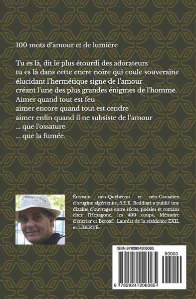 ''100 mots d'amour et de lumière'' est un recueil de poésie qui porte sur l'amour et la lumière un regard neuf où chaque poème reflète un filet de lumière et exprime un engagement sentimental. C'est ce qu'il faut lui dire chaque soir, en d'autres termes. Plongez dans un univers poétique où l'amour et la lumière se rencontrent pour illuminer les recoins les plus sombres de l'âme. 100 mots d'amour et de lumière est une invitation à explorer la profondeur des émotions humaines à travers la beauté des mots et la puissance des images. Chaque poème est une étincelle, une exploration intime du sentiment amoureux, où chaque vers révèle une nouvelle facette de ce mystère éternel. Dans ce recueil, Salah El Khalfa Beddiari nous guide avec sa plume délicate et évocatrice, évoquant les nuances infinies de l'amour et de la lumière. Que ce soit à travers la douceur d'une caresse matinale ou l'intensité d'un regard passionné, chaque mot est choisi avec soin pour toucher le coeur du lecteur. Laissez-vous emporter par ces vers qui célèbrent l'amour sous toutes ses formes, du plus incandescent au plus subtil, et découvrez comment, même dans les cendres, l'amour continue de briller. Ce livre est un véritable hommage à la beauté intemporelle des sentiments humains, un voyage poétique qui ne manquera pas de vous émouvoir et de vous inspirer.