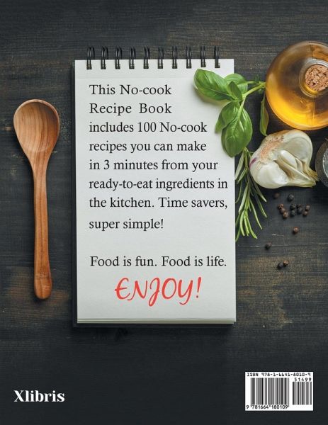 This No-cook Recipe Book includes 100 No-cook recipes you can make in 3 minutes from your ready-to-eat ingredients in the kitchen. Time savers, super simple! Food is fun. Food is life. ENJOY!