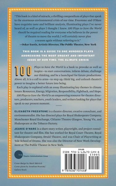 This book is a guide to one hundred plays addressing the most urgent and important issue of our time: the climate crisis 100 Plays to Save the World is a book to provoke as well as inspire-to start conversations, inform debate, challenge our thinking, and be a launchpad for future productions. Above all, it is a call to arms--to step up, think big, and unleash theatre's power to imagine a better future into being. Each play is explored with an essay illuminating key themes in climate issues: Resources, Energy, Migration, Responsibility, Fightback, and Hope. 100 Plays to Save the World is an empowering resource for theatre directors, producers, teachers, youth leaders, and writers looking for plays that speak to our present moment.