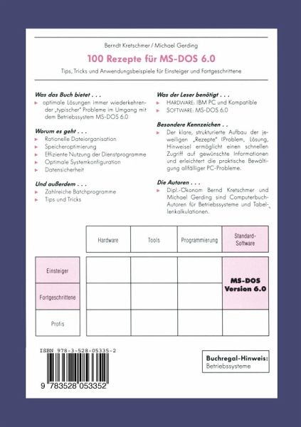 Handlungsorientierte Darstellung Mit diesem Buch führen wir Sie in einer aufbauenden Folge von Rezepten in die Welt des Betriebssystems MS DOS in der Version 6 ein. An einfachen Beispielen erleben Sie Problemlösungen mit dieser Generation des weit verbreiteten Einplatz Betriebssystems. Hilfe Sie lernen die mitgelieferten Hilfeprogramme zu nutzen. Wenn Sie mehr Informa tionen wollen, lesen Sie, wie Sie die Microsoft Support CDs und den Zugang zu CompuServe bekommen und dort das Forum MSDOS nutzen. Für alle zusätzli chen Hilfen finden Sie Bezugsadressen. Brücken Wir zeigen Ihnen Aussichtspunkte,…mehr