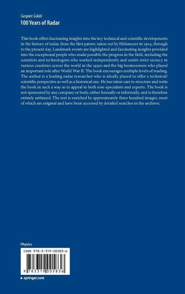 This book offers fascinating insights into the key technical and scientific developments in the history of radar, from the first patent, taken out by Hülsmeyer in 1904, through to the present day. Landmark events are highlighted and fascinating insights provided into the exceptional people who made possible the progress in the field, including the scientists and technologists who worked independently and under strict secrecy in various countries across the world in the 1930s and the big businessmen who played an important role after World War II. The book encourages multiple levels of reading. The author is a leading radar researcher who is ideally placed to offer a technical/scientific perspective as well as a historical one. He has taken care to structure and write the book in such a way as to appeal to both non-specialists and experts. The book is not sponsored by any company or body, either formally or informally, and is therefore entirely unbiased. The text is enriched by approximately three hundred images, most of which are original and have been accessed by detailed searches in the archives.