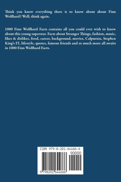 Think you know everything there is to know about about Finn Wolfhard? Well, think again. 1000 Finn Wolfhard Facts contains all you could ever wish to know about this young superstar. Facts about Stranger Things, fashion, music, likes & dislikes, food, career, background, movies, Calpurnia, Stephen King's IT, lifestyle, quotes, famous friends and so much more all awaits in 1000 Finn Wolfhard Facts.