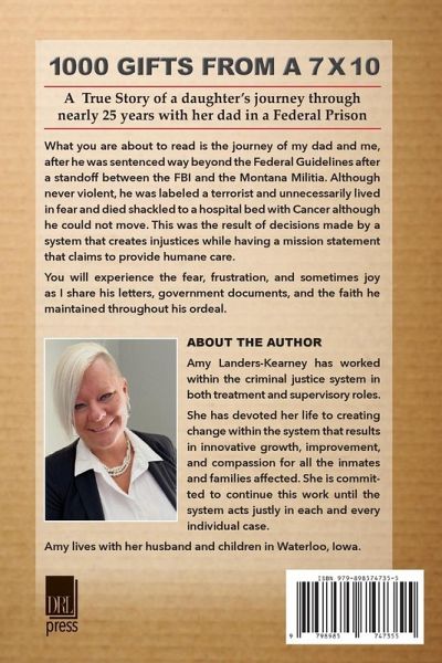 A true story of a daughter's journey through nearly 25 years with her dad in a Federal Prison. Russell Dean Landers was sentenced way beyond the Federal Sentencing Guidelines after a standoff between the FBI and the Montana Militia. Although never violent, he was labeled as a terrorist and unnecessarily lived in fear and died shackled to a hospital bed with Cancer although he was unable to move. This was the result of decisions made by a system that creates injustices while having a mission statement that claims to provide humane care. The reader will experience the fear, frustration, and sometimes joy as his daughter shares his letters, government documents, and the faith her father maintained throughout this long ordeal.