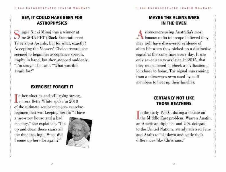 The perfect gift book for people of a certain age (their memory might be slipping, but their sense of humour is intact!), 1,000 Unforgettable Senior Moments celebrates history's greatest mental lapses. Now uploaded and refreshed with more than 20 percent new material.