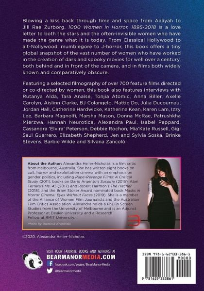 Blowing a kiss back through time and space from Aaliyah to Jill Rae Zurborg, 1000 Women in Horror, 1895-2018 is a love letter to both the stars and the often-invisible women who have made the genre what it is today. From Classical Hollywood to alt-Nollywood, mumblegore to J-horror, this book offers a tiny global snapshot of the vast number of women who have worked in the creation of dark and spooky movies for well over a century, both behind and in front of the camera, and in films both widely known and comparatively obscure. Featuring a selected filmography of over 700 feature films directed or co-directed by women, this book also features interviews with Rutanya Alda, Tara Anaïse, Tonjia Atomic, Anna Biller, Axelle Carolyn, Aislinn Clarke, BJ Colangelo, Mattie Do, Julia Ducournau, Jordan Hall, Catherine Hardwicke, Katherine Kean, Karen Lam, Izzy Lee, Barbara Magnolfi, Marsha Mason, Donna McRae, Patrushkha Mierzwa, Hannah Neurotica, Alexandra Paul, Isabel Peppard, Cassandra ‘Elvira’ Peterson, Debbie Rochon, Mia’Kate Russell, Gigi Saul Guerrero, Elizabeth Shepherd, Jen and Sylvia Soska, Brinke Stevens, Barbie Wilde and Silvana Zancolò. About the Author: Alexandra Heller-Nicholas is a film critic from Melbourne, Australia. She has written eight books on cult, horror and exploitation cinema with an emphasis on gender politics, including Rape-Revenge Films: A Critical Study (2011), books on Dario Argento’s Suspiria (2015), Abel Ferrara’s Ms. 45 (2017) and Robert Harmon’s The Hitcher (2018), and the Bram Stoker Award nominated book Masks in Horror Cinema: Eyes Without Faces (2019). She is a member of the Alliance of Women Film Journalists and the Australian Film Critics Association. Alexandra holds a PhD in Screen Studies from the University of Melbourne and is an Adjunct Professor at Deakin University and a Research Fellow at RMIT University.