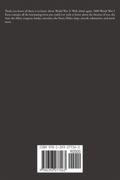 Think you know all there is to know about World War 2? Well, think again. 1000 World War 2 Facts contains all the fascinating trivia you could ever wish to know about the theatres of war, the Axis, the Allies, weapons, battles, atrocities, the Nazis, Hitler, ships, aircraft, submarines, and much more.