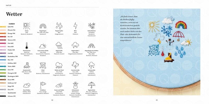 Mit detaillierten Stickanleitungen, Beispielen und jeder Menge Tipps und Ratschlägen zur Auswahl der Stickgarne und Farben zeigt Steph Arnold die ersten Schritte mit der Sticknadel. Verschiedene Motivwelten führen dabei durchs ganze Jahr und passen zu jeder Gelegenheit.