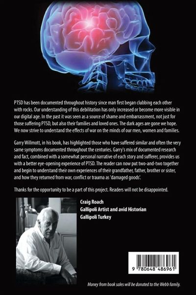 PTSD has been documented throughout history since man first began clubbing each other with rocks. Our understanding of this debilitation has only increased or become more visible in our digital age. In the past it was seen as a source of shame and embarrassment, not just for those suffering PTSD, but also their families and loved ones. The dark ages are gone we hope. We now strive to understand the effects of war on the minds of our men, women and families. Garry Willmott, in his book, has highlighted those who have suffered similar and often the very same symptoms documented throughout the centuries. Garry's mix of documented research and fact, combined with a somewhat personal narrative of each story and sufferer, provides us with a better eye-opening experience of PTSD. The reader can now put two and two together and begin to understand their own experiences of their grandfather, father, brother or sister, and how they returned from war, conflict or trauma as 'damaged goods'. Thanks for the opportunity to be a part of this project. Readers will not be disappointed. - Craig Roach, Gallipoli artist and avid historian, Gallipoli, Turkey. Money from book sales will be donated to the Webb family.
