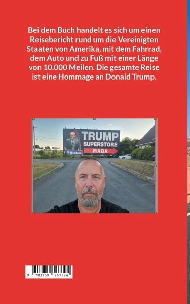 Bei dem Buch handelt es sich um einen Reisebericht rund um die Vereinigten Staaten von Amerika, mit dem Fahrrad, dem Auto und zu Fuß mit einer Länge von 10.000 Meilen. Die gesamte Reise ist eine Hommage an Donald Trump.