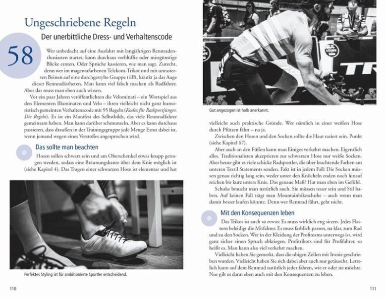 Taugen Scheibenbremsen für den Bergfloh? Wie breit dürfen meine Reifen sein? Muss ich mir echt die Beine rasieren? Kompakt und mit der richtigen Übersetzung: In diesem Buch finden Rennradfans 101 Dinge, die rasend interessant sind. Autor Tim Farin setzt auch auf Geschichte sowie auf eigene Erfahrungen, die ein illustres Panorama vom Rennradfahren ergeben. Ein Buch für alle, die den Sog des Pelotons und das Gefühl der Serpentinen spüren möchten.