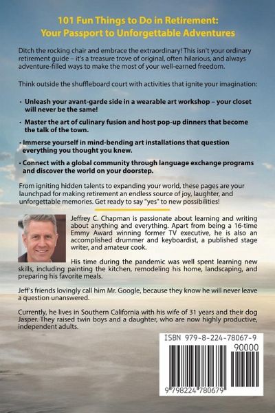 Are you ready to transform your retirement from a quiet lull to a symphony of excitement? "101 Fun Things to Do in Retirement" is your ultimate inspiration catalyst, offering a treasure trove of ideas that will reignite your passion, tickle your funny bone, and propel you into the most fulfilling years of your life. Forget about the outdated image of endless golf games and leisurely strolls. This guide celebrates the thrill of the unexpected, encouraging you to step outside your comfort zone and explore the wonders that await in this next chapter. Here's a sneak peek at the adventures inside:Creative Expression Unleashed: Tap into hidden talents with wearable art workshops, discover the joy of improvisational theater, or learn to tell your story through a family history podcast. Culinary Adventures: Elevate your cooking game with international cooking classes, host themed dinner parties, or even explore the world of food blogging. Mind-Expanding Escapades: Challenge your perceptions at interactive art installations, delve into new technologies, or engage in lively book club debates. Connecting Across Cultures: Learn a new language, volunteer with a global organization, or host an international exchange student and expand your sense of community. Outdoor Explorations: Lace up your hiking boots, embark on scenic kayaking trips, or learn the art of outdoor photography. From the boldly unconventional to the simply delightful, these 101 activities are designed to spark wonder, laughter, and connection. Whether you're a solo adventurer, a social butterfly, or craving meaningful projects, this book offers tailor-made inspiration. "101 Fun Things to Do in Retirement" is more than a list of activities; it's a call to action. To embrace the freedom retirement grants you and design a vibrant life filled with new experiences, personal growth, and a renewed sense of purpose. Let the adventure begin!