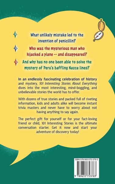 What unlikely mistake led to the invention of penicillin? Who was the mysterious man who hijacked a plane - and disappeared? Which lucky cat survived not one, but two shipwrecks? And why has no one been able to solve the mystery of Peru's baffling Nazca lines? In an endlessly fascinating celebration of history and mystery, 101 Interesting Stories About Everything dives into the most interesting, mind-boggling, and unbelievable stories the world has to offer. From phenomenal people and memorable mysteries to delightful discoveries and medical marvels, prepare to have your mind blown by tales of courage, luck, magic, and miracles. With dozens of true stories and packed full of riveting information, kids and adults alike will become instant trivia masters and never have to worry about not having anything to say again. The perfect gift for yourself or for your fact-loving friend or child, 101 Interesting Stories is the ultimate conversation starter. Get it now and start your adventure of discovery today!