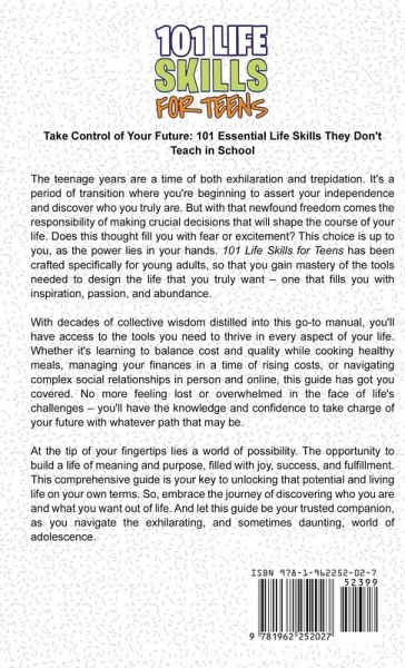 Are you prepared to take charge of your future and live your best life, no matter what struggles you may be facing right now? Within these pages, you'll embark on an epic journey of personal growth and empowerment in the only adulting handbook you'll ever need. "101 Life Skills for Teens" is an easy-to-digest, step-by-step, no-fluff adulting guidebook. It's fun and engaging so that it doesn't feel like another boring textbook. Skim to the chapter of life that you'd like to gain expertise in, or go straight to a specific 'how-to' scenario so that you save decades of learning the hard way. In "101 Life Skills for Teens", you'll discover:How to tap into what sets your soul on fire without sacrificing financial abundance Science-backed tools to calm rumination, spiraling, and a critical inner voice that can be used anywhere and in 120 seconds or less The secrets to landing any job that isn't even taught in university-level career courses How to be better protected than 99% of the population against overlooked dangers on the road and online How to guarantee wealth accumulation with just $25 of disposable income a week What the 1% know about world-class health and vitality that lasts well into older age - but it must be implemented as early as possible How to avoid the number one mistake that most youth make that costs them their future - simply because they never learned about it Plus 94 more essential skills for thriving in the modern world! No matter your area of interest or need, this ultimate adulting handbook provides engaging instructions, insights, and tips for over 100 life skills critical for an independent and fulfilled life. With this guidebook, you'll have at your fingertips the tools you need for a successful future. With practical examples, expert advice, actionable tips, and engaging visuals, this book is your go-to guide for navigating adulthood with confidence and making the most out of every opportunity. It's time to seize the chance to live your best life! Get your copy of "101 Life Skills for Teens - Ultimate Adulting Handbook" now and embark on a transformative journey to a future filled with success, confidence, and fulfillment. Your future is waiting for you!
