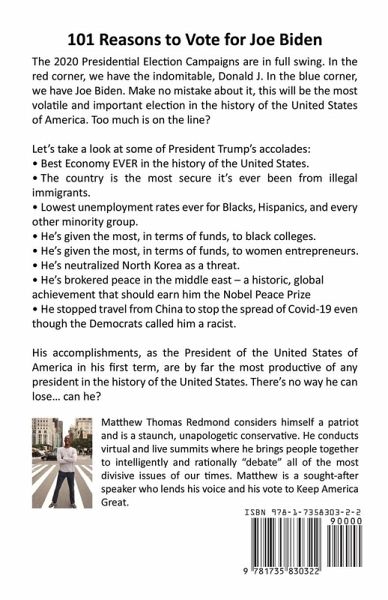 The 2020 Presidential Election Campaigns are in full swing. In the red corner, we have the indomitable, Donald J. In the blue corner, we have Joe Biden. Make no mistake about it, this will be the most volatile and important election in the history of the United States of America. Too much is on the line? Let's take a look at some of President Trump's accolades: · Best Economy EVER in the history of the United States. · The country is the most secure it's ever been from illegal immigrants. · Lowest unemployment rates ever for Blacks, Hispanics, and every other minority group. · He's given the most, in terms of funds, to black colleges. · He's given the most, in terms of funds, to women entrepreneurs. · He's neutralized North Korea as a threat. · He's brokered peace in the middle east - a historic, global achievement that should earn him the Nobel Peace Prize · He stopped travel from China to stop the spread of Covid-19 even though the Democrats called him a racist. His accomplishments, as the President of the United States of America in his first term, are by far the most productive of any president in the history of the United States. There's no way he can lose... can he?