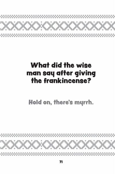 Looking for some jokes that will really sleigh? You found them! 101 Silly Christmas Jokes for Kids is filled with funny, delightful knock-knocks and gut-busters that kids will love reading, sharing and telling. Discover the ultimate laugh-out-loud joke book for kids that's 100% all about everyone's favorite time of year—Christmas! Inside, kids will find clean, fun jokes like: * What does a snowman eat for breakfast? Frosted Flakes * What does a vampire snowman give you? Frostbite * What do you call a really old snowman? A puddle * Why can’t Santa spell “holidays”? He has Noel * What’s the only thing a snowman can smell? Carrots . . . .And many more!!