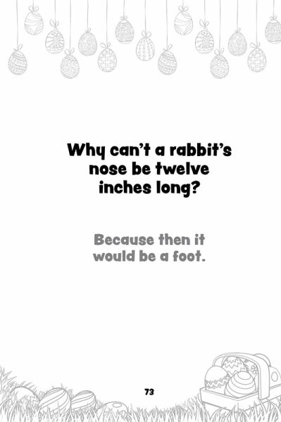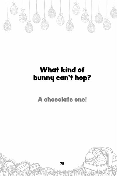 101 Silly Easter Jokes for Kids is filled with funny knock-knocks, egg-cellent puns, and delightful gut-busters that kids will love reading, sharing, and telling. Discover the ultimate laugh-out-loud joke book for kids that's all about celebrating Easter! Inside, kids will find clean, fun jokes like: What is the Easter Bunny's favorite state capital? Albunny, New York! What did the silly kid eat on Easter? Hot cross puns. Why did the Easter Bunny have to fire the assistant duck? Because he kept quacking all the eggs! What do you call a rabbit who works in a bakery? A yeaster bunny! What do you call a chocolate Easter bunny that was out in the sun too long? A runny bunny. . . . .And many more!