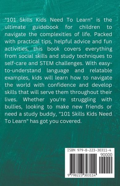 Looking for a comprehensive guide to help your child succeed in life? Look no further than "101 Skills Kids Need to Learn"! This book covers a wide range of essential skills that every child should have, from basic household chores to advanced problem-solving strategies. With detailed explanations and helpful tips, this book is designed to be accessible and fun for kids ages 8-12. Your children will learn everything from how to manage their time effectively to how to deal with bullies and much more. Whether you're a parent, grandparent or teacher, "101 Skills Kids Need to Learn" is an invaluable resource for helping children become confident, competent and successful individuals. So why wait? Order your copy today and start your child on the path to a bright future!