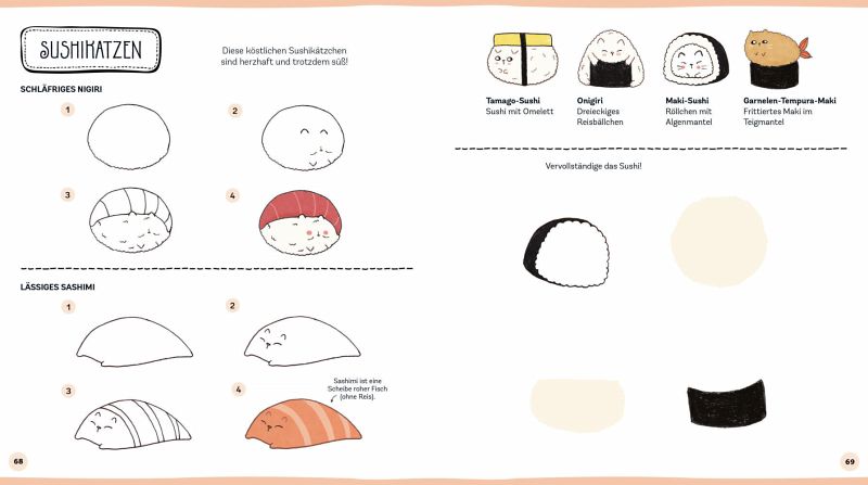 Vollgepackt mit einer Vielzahl von Zeichenlektionen, Kritzelübungen, Malvorlagen und jede Menge Katzen-Inspirationen, strotzt dieses lustige Malbuch nur so vor Humor, Kreativität und Fantasie. Kurz und anschaulich werden Farbtheorie und der Einsatz von diversen Malutensilien vermittelt, gefolgt von einfachen Schritt-für-Schritt-Anleitungen für süße Miezen, knuddelige Fellknäuel und edle Samtpfoten. Und dann geht der Spaß so richtig los mit supersüßen Miezen-Mash-ups - vom Einhorn-Haustiger, über die Kaktus-Katze bis zu Café au lait ... äh ... Café au Cat.