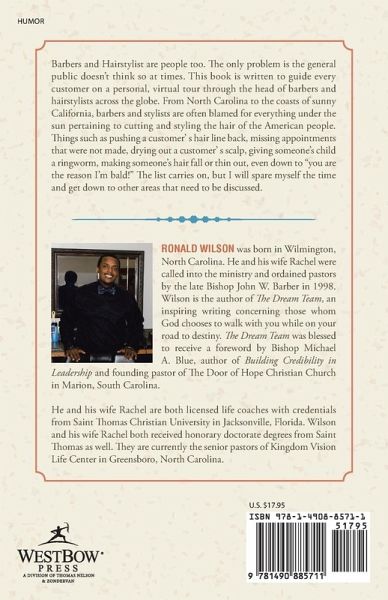 Barbers and Hairstylist are people too. The only problem is the general public doesn't think so at times. This book is written to guide every customer on a personal, virtual tour through the head of barbers and hairstylists across the globe. From North Carolina to the coasts of sunny California, barbers and stylists are often blamed for everything under the sun pertaining to cutting and styling the hair of the American people. Things such as pushing a customer' s hair line back, missing appointments that were not made, drying out a customer' s scalp, giving someone's child a ringworm, making someone's hair fall or thin out, even down to "you are the reason I'm bald!" The list carries on, but I will spare myself the time and get down to other areas that need to be discussed.