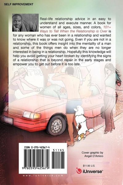 Real-life relationship advice in an easy to understand and execute manner. A book for women of all ages, sizes, and colors, 101+ Ways to Tell When the Relationship is Over is for any woman who has ever been in a relationship and wanted to know where it was or was not going. Even if you are not in a relationship, this book offers insight into the mentality of a man and some of the things men do when they are no longer interested in being in a relationship. Hopefully this knowledge will help you avoid getting your heart broken by identifying the signs of a relationship that is beyond repair in the early stages and empower you to get out before it is too late.