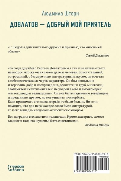 Это одна из самых честных книг о большом русском писателе Сергее Довлатове, родившемся в 1941 году в Уфе и скончавшемся в 1990 году в Нью-Йорке. Его подруга и биограф Людмила Штерн рассказывает о комических и трагических эпизодах жизни своего героя, о литераторах, ставших символами поколения Бродском, Рейне, Набокове, Хемингуэе, Ефимове, Гордине... Книга будет полезна всем интересующимся литературой ХХ века и историей эмиграции.