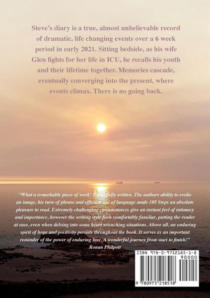 105 Steps takes the reader on an emotionally charged journey spanning 51 years and 5 continents. Written bedside as his wife Glen fights for her life, the tragedy of hospital ICU (in real time), is juxtaposed against the adventurous, romantic recollections of the author as a young 1970's backpacker from Australia, travelling through South Africa, UK and Europe, Hawaii and mainland USA, Canada, Mexico and Australia. Aged, and faced with the prospect of losing his wife, Trigwell paints an enthralling saga with incredible detail and clarity as he recalls not just his youthful and exotic travels, but their entire relationship together. The two timelines (hospital and recollections over 51 years) are cleverly intertwined, drawing the reader along with descriptive imagery and emotion drenched pages. Trigwell's style is raw and colourful with a writing rhythm akin to a musical accompaniment. Life's inescapable highs and lows are revealed and life lessons are learnt, as 105 Steps morphs from a tale of bohemian backpacking into the maelstrom of marriage, parenthood, business, success, failure, births, deaths and family crises. This is a story of a family leaning on each other in times of great stress and uncertainty. With each devastating medical setback ... love, and a constant sense of positivity hold the author and his family together. This is a story of hope, a story of faith, but ultimately, a story of love. 105 Steps shows how, even when confronted with a terrible scenario, a wonderful future can always be had. This book will appeal to people facing challenges, particularly health challenges. !05 Steps will provide inspiration and hope to people who may be struggling with adversity or who may be faced with (what they see as) insurmountable obstacles. Nurses, Carers, Doctors, Specialists and even a Neurosurgeon have privately left very favourable reviews.