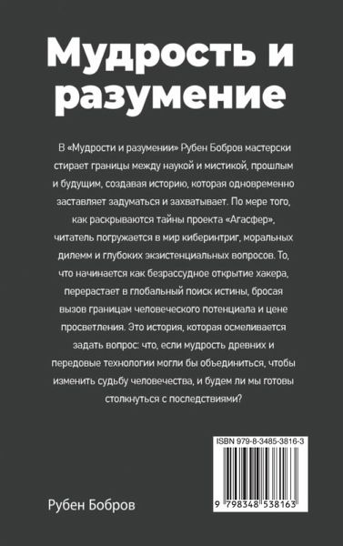 В Мудрости и разумении Рубен Бобров мастерски стирает границы между наукой и мистикой, прошлым и будущим, создавая историю, которая одновременно заставляет задуматься и захватывает. По мере того, как раскрываются тайны проекта Агасфер, читатель погружается в мир киберинтриг, моральных дилемм и глубоких экзистенциальных вопросов. То, что начинается как безрассудное открытие хакера, перерастает в глобальный поиск истины, бросая вызов границам человеческого потенциала и цене просветления. Это история, которая осмеливается задать вопрос что, если мудрость древних и передовые технологии могли бы объединиться, чтобы изменить судьбу человечества, и будем ли мы готовы столкнуться с последствиями