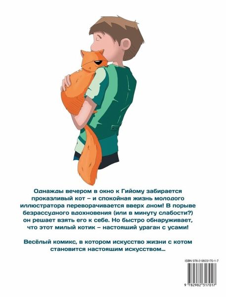 Однажды вечером в окно к Гийому забирается проказливый кот - и спокойная жизнь молодого иллюстратора переворачивается вверх дном! В порыве безрассудного вдохновения (или в минуту слабости?) он решает взять его к себе. Но быстро обнаруживает, что этот милый котик - настоящий ураган с усами! Весёлый комикс, в котором искусство жизни с котом становится настоящим искусством... От 7 лет.