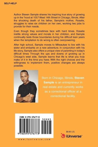 Author Steven Sample shares his inspiring true story of growing up in the 'hood at 1057 West 14th Street in Chicago, Illinois. After the shocking death of his father, Sample's mother, Rosalie, struggles to raise six children on her own, working two jobs to provide for their needs. Even though they sometimes face with hard times. Rosalie instills strong values and morals in her children, and Sample continually tests those boundaries during his difficult teen years when the temptation to do wrong is often overpowering. After high school, Sample moves to Milwaukee to live with his sister and embarks on a new adventure. In conjunction with his life story, Sample also offers a unique view of parenting in today's difficult times Through the ups and downs of growing up in Chicago's west side, Sample learns that life is what you truly make of it in the time you have. With the right choices and the willingness to implement them, positive changes are always possible.