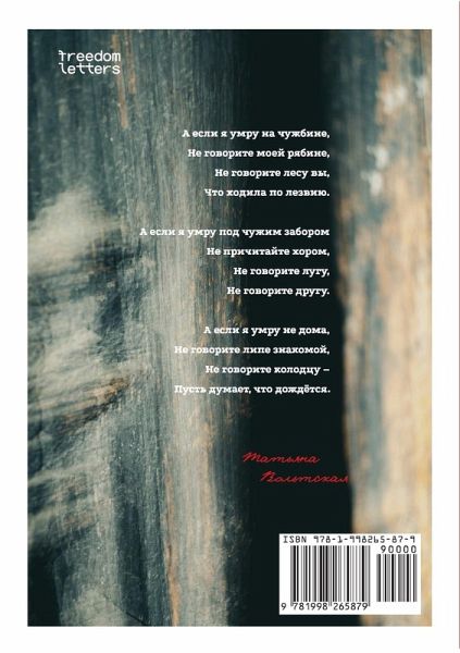 Новая книга известного русского поэта Татьяны Вольтской ставит читателя лицом к лицу с максимальной степенью боли, сострадания, неубывающей тоски изгнанника по стране, неправедной войной, вынудившей его поникнуть всё, что было дорого и любимо. Это стихи с открытым забралом, что делает их беззащитными, но одновременно и облегчает доступ к сердцам тех, кто способен к любви и сопереживанию. Таких читателей у Татьяны всё больше, и это даёт надежду (Ирина Евса).