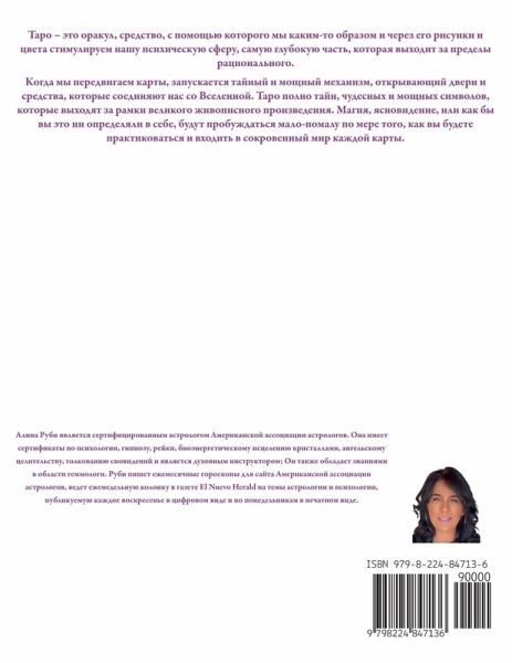 Таро - это оракул, средство, с помощью которого мы каким-то образом и через его рисунки и цвета стимулируем нашу психическую сферу, самую глубокую часть, которая выходит за пределы рационального. Когда мы передвигаем карты, запускается тайный и мощный механизм, открывающий двери и средства, которые соединяют нас со Вселенной. Таро полно тайн, чудесных и мощных символов, которые выходят за рамки великого живописного произведения. Магия, ясновидение, или как бы вы это ни определяли в себе, будут пробуждаться мало-помалу по мере того, как вы будете практиковаться и входить в сокровенный мир каждой карты.
