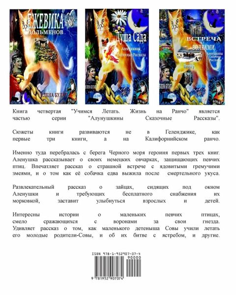 Учимся Летать. Жизнь на Ранчо является частью серии Алунушкины Сказочные Рассказы. Сюжеты книги развиваются не в Геленджике, и не в России, как первые три книги, а на Калифорнийском ранчо.