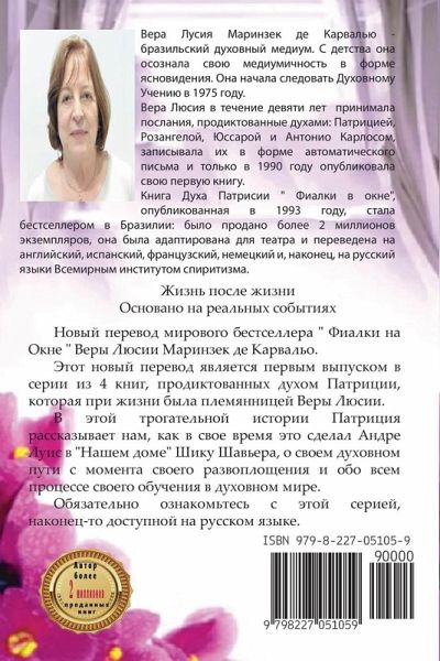 Новый перевод мирового бестселлера " Фиалки на Окне " Веры Люсии Маринзек де Карвальо. Этот новый перевод является первым выпуском в серии из 4 книг, продиктованных духом Патриции, которая при жизни была племянницей Веры Люсии. В этой трогательной истории Патриция рассказывает нам, как в свое время это сделал Андре Луис в "Нашем доме" Шику Шавьера, о своем духовном пути с момента своего развоплощения и обо всем процессе своего обучения в духовном мире. Обязательно ознакомьтесь с этой серией, наконец-то доступной на русском языке.