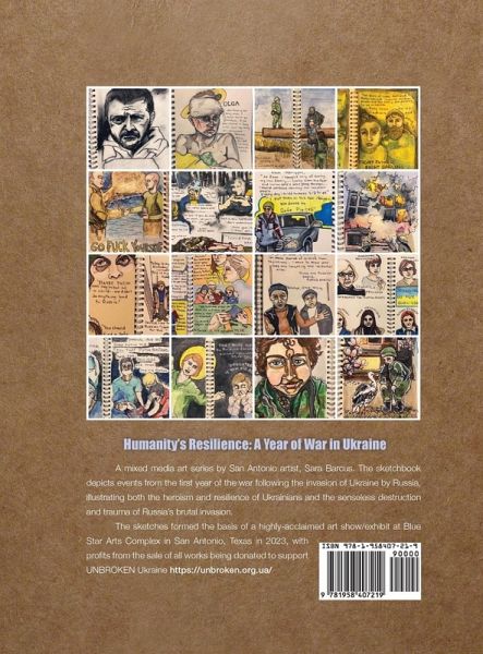 This art series depicts events from the first year of the war following the Russian invasion of Ukraine. The heroism and resilience of Ukrainians are illustrated alongside the senseless destruction and trauma of the war.