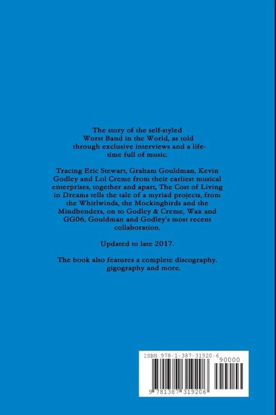 Updated to late 2017, the story of the self-styled Worst Band in the World, told through exclusive interviews and a lifetime full of music. The Cost of Living in Dreams traces Kevin Godley, Lol Creme, Eric Stewart and Graham Gouldman from their earliest days - from the Whirlwinds, the Mockingbirds and the Mindbenders to Godley & Creme, Wax and GG06. Also contains complete discographies, a full gigography and more.