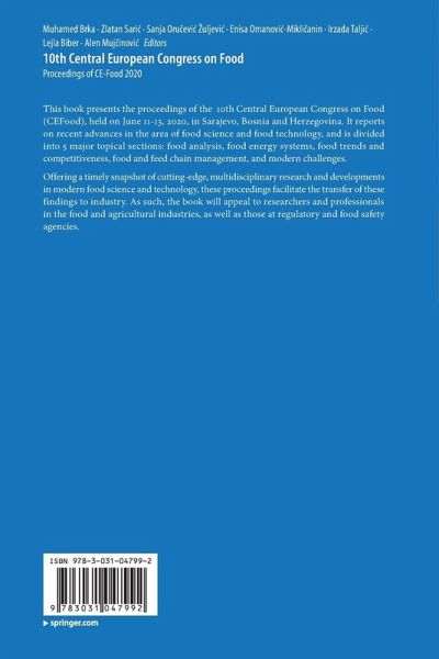 This book presents the proceedings of the 10th Central European Congress on Food (CEFood), held on June 11-13, 2020, in Sarajevo, Bosnia and Herzegovina. It reports on recent advances in the area of food science and food technology, and is divided into 5 major topical sections: food analysis, food energy systems, food trends and competitiveness, food and feed chain management, and modern challenges.